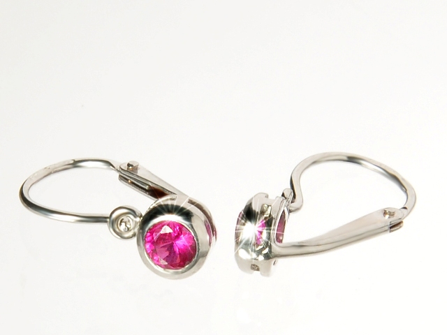 Dětské náušnice vyrobené z bílého zlata. Ozdobná část má tvar kolečka s červeným syntetickým rubínem. Náušnice jsou české výroby s jednoduchým bezpečnostním zapínáním - ohnutím drátku v zapínacím očku můžete tzv. zamknout naušničku, aby nedošlo ke ztrátě. Výška 13mm šířka ozdobné části s kamínky 6mm Cena za jeden pár. VHODNÉ PRO VĚK: KOJENEC - 5 roků. ( Dobré změřit výšku vpichu pro náušničku.)