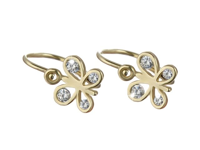 Malého motýlka zdobí bílé (zirkony) syntetické kamínky. Mají jednoduché dětské zapínání.