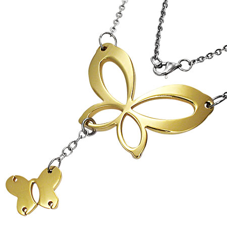Náhrdelník z chirurgické oceli - kombinace barev technologie PVD o délce 40cm. Rozměr ozdobné části 4.50x6.50cm velikost hlavního motýla 4.50x3cm