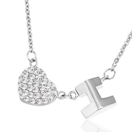 Náhrdelník z chirurgické oceli ve tvaru srdce s kamínky o délce 42cm. Rozměr 2.40x1.00cm