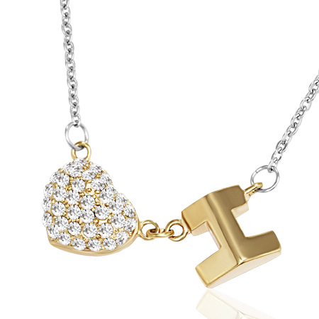 Náhrdelník z chirurgické oceli ve tvaru srdce s kamínky o délce 42cm. Rozměr 2.40x1.00cm