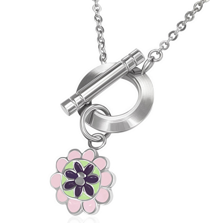 Náhrdelník z chirurgické oceli kytička - kombinace barev o délce 50cm. Rozměr 1.40x1.70cm