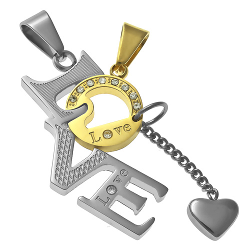 Přívěsek z chirurgické oceli LOVE se zirkony