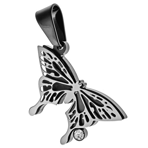 Přívěsek z chirurgické oceli motýl se zirkonem