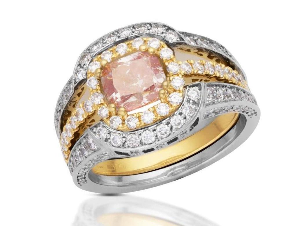 Exklusivní zlatý prsten s jedním středovým diamantem CUSHION velikosti 1,82ct a přírodní barvy Fancy Pink Purple/I1 upravené čistoty (clarity enhanced) s mezinárodním certifikátem EGL.