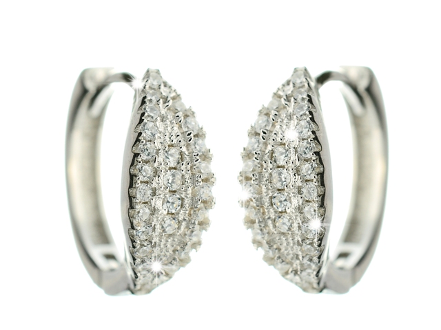 Stříbrné dámské náušnice s bílými zirkony a prořezy. Velikost: výška 13mm šířka 5mm.