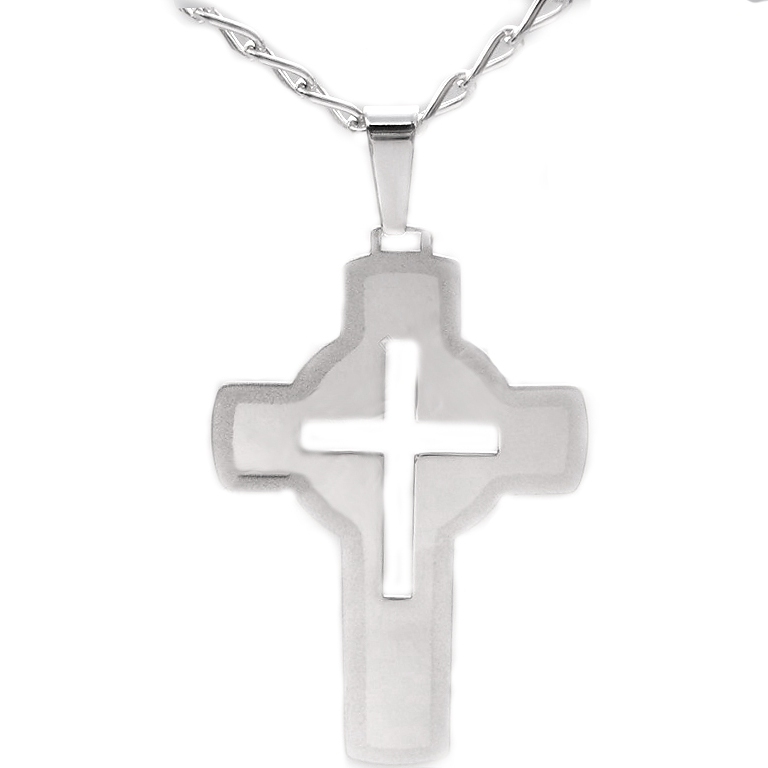 Stříbrný přívěsek kříž s pískovaným okrajem. odvrácená strana lesk.