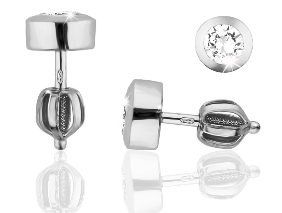 Zlaté dámské náušnice na šroubek z bílého zlata, osazené bílými zirkony.