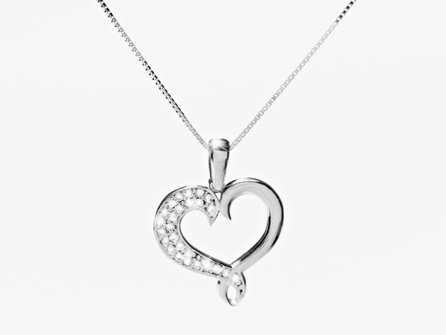 Zlatý přívěsek srdíčko, posázený zirkony, které zajišťují dokonalý lesk.