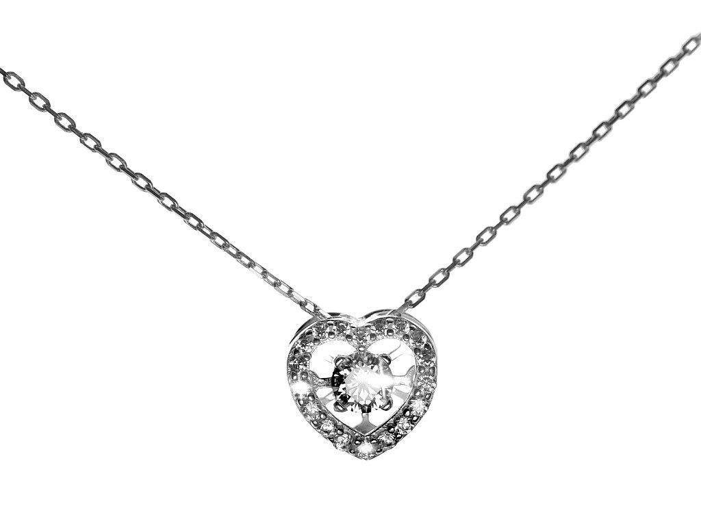Moderní náhrdelník s 3D srdíčkem, posázený výběrovými zirkony a jedním dominantním uvnitř.