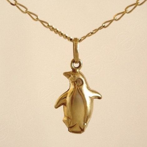 Přívěsek ze žlutého zlata ve tvaru tučňáka. Rozměry v/š 14 x 10mm (měřeno bez závěsného očka) - oboustranný.